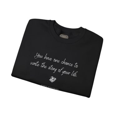 The story of your life matters. Wear this sweatshirt to spread inspiration and hope everywhere you go! This heavy blend crewneck sweatshirt is pure comfort in the color Black. The collar is ribbed knit, so it retains its shape even after washing. There are no itchy side seams on this sweater.