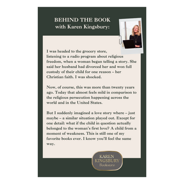 A luxurious and exclusive Karen Kingsbury Bookstore bookmark included with your purchase of this book!