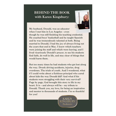 (PAPERBACK) From #1 New York Times bestselling author Karen Kingsbury comes an inspiring Baxter Family novel about a beloved high school principal who starts a Bible Study to improve the lives of his struggling students, only to become the national focus of a controversial lawsuit.