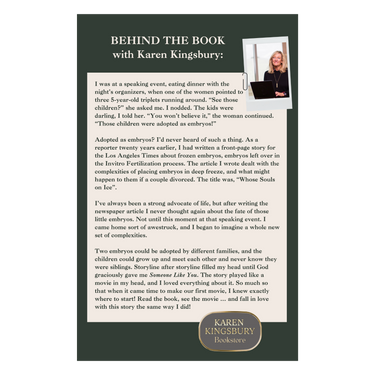A portion of every purchase made on the Karen Kingsbury Bookstore goes to Karen Kingsbury Productions so that more movies can be made of your favorite books!