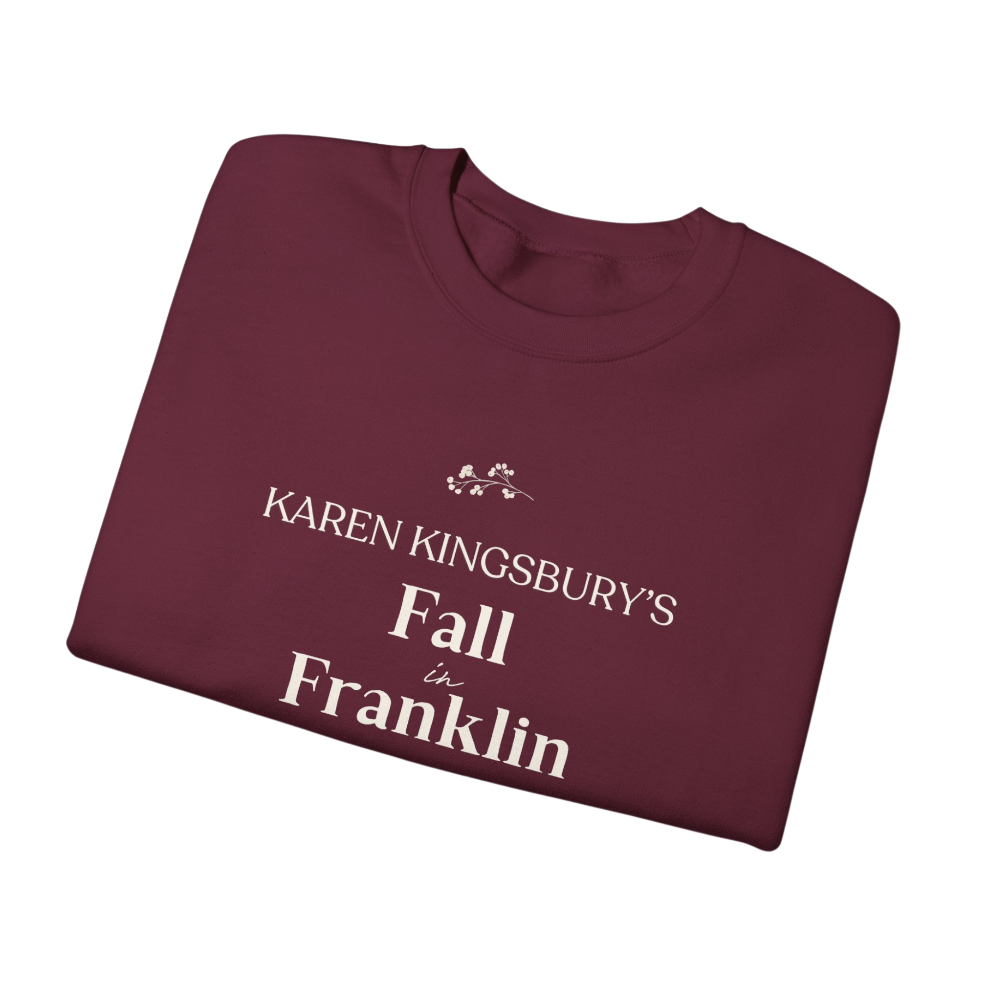 The perfect sweatshirt to commemorate Karen Kingsbury's beautiful Fall in Franklin retreat! This heavy blend crewneck sweatshirt is pure comfort. The collar is ribbed knit, so it retains its shape even after washing. There are no itchy side seams on this sweater. Available in stunning maroon.